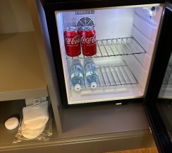 Есть минибар бесплатный, все необходимые банные принадлежности, фен, кофе.