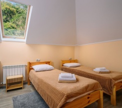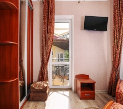Очень хороший гостевой дом! Завтраки простые, но сытные, на территории есть небольшая детская площадка, бассейн с подогревом и бар в саду. По предварительному заказу готовят обеды и ужины, по вечерам шашлык. Сад красивый и ухоженный. Рядом находится ресторан, автобусная остановка и магазин. До моря минут 10-15. Хозяева гостеприимные и при этом ненавязчивые. В номерах есть все необходимое. Для жителей первых этажей бонусом местный зоопарк)).