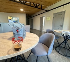 Когда приехали шёл дождь и было отключение света, пришлось искать, спрашивали у местных жителей и нашли. Разместились, ждали когда дадут свет, потом ждали когда будет вода. На утро всё уже была вода... Рядом море, кофейни, кофе также.
