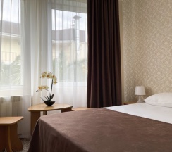 В номере возможны две односпальные или одна двуспальная кровать. С комфортом можно разместиться одному или двум гостям, или семье из двух человек с ребенком возрастом до 4 лет включительно (ребенок без доплаты размещается на спальных местах с родителями). В номере есть собственный санузел с душем. Номер оснащен индивидуальным кондиционером и имеет доступ к сети Wi-Fi. В номере есть все необходимое для полноценного отдыха или для плодотворной работы. Мини холодильник, фен, шкаф для одежды с полками и плечиками. В санузле для вашего удобства есть жидкое мыло, туалетная бумага, комплект полотенец (для ног, лицевые и банные). Расположены номера с первого по третий этаж.
