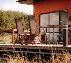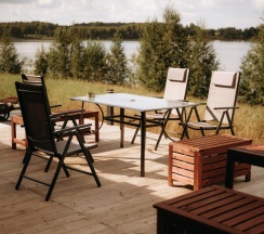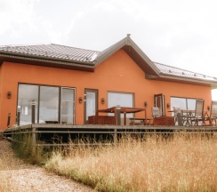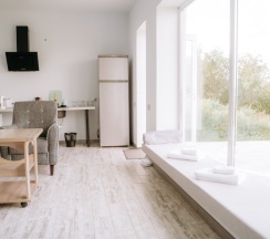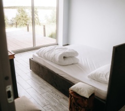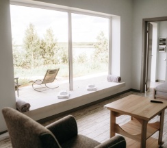 Двоякое впечатление. С одной стороны, прекрасная задумка, клиентоориентированность, свежий современный ремонт, невероятная природа, панорамные окна на водоем- отдельный вид удовольствия)) С другой стороны, пляжа нет, заросшая не ухоженная территория, в домике трещина на панорамном стекле, унитаз сорван с креплений +лопнула труба слива, около соседних домиков горы мусора, в мангале около нашего домика куча окурков. Такое ощущение, что собственники очень сильно экономят на персонале