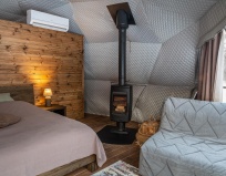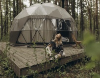 Домики в виде полусфер , расположенные прямо в лесу,- это просто потрясающе! Внутри есть всё необходимое для комфортного проживания, даже коврик для йоги - очень приятно! Еда была сытной и вкусной, спасибо поварам!