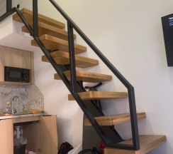 На первом этаже телевизор с интернетом, кондиционер, кухня, раскладной диван, и конечно стол. Также на первом этаже был выход на собственную террасу!
