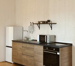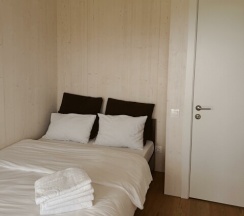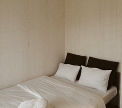 Необычный БАРН ХАУС- своя мини терасса, огражденная перилами. На 1 этаже диван кровать 160 на 200, на 2 этаже спальня размером 190 на 200. Душ, туалет, прихожая, кухня.