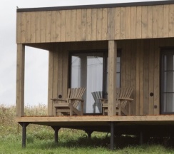Домик полностью из Карельского дерева отделан дранкой, всего 15 кв.м с просторной террасой 15 кв.м расположены на берегу реки, которая берет начало прямо на территории глэмпинга! Из домика открывается панорамный шикарный вид на реку.
