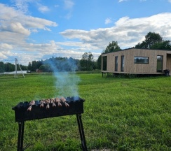 Гостили в глэмпинге 05.07.2025. Это волшебное место! Домики все новые, чистые, с дизайнерской мебелью и предметами интерьера. Бельё белоснежное. Полотенец выдали много. В домике есть всё необходимое: от тапочек до посуды, чая, кофе, сахара, воды. В ванной администрация позаботились даже о креме для тела, шампуне и зубных принадлежностях. У каждого домика свой мангал. Всё очень качественное. Но ехать сюда стоит главным образом за впечатлениями: обязательно сходите на утреннюю йога -разминку, арендуйте САП или велосипед, а вечер завершите на медитации с поющими чашами. И обязательно побалуйте себя блюдами из местного меню. Шеф -повар Илья - настоящий профессионал. Рекомендую к посещению.