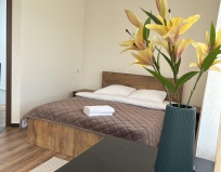 Мы заселились давольно в позднее время, ближе к 00.00. Нас встретили, проводили. Хозяева приветливые, добродушные. Номер чистый, светлый. Горячая вода есть. Гладильная доска, вода, чай, сахар, все в доступности. Есть бесплатная парковка прям во дворе. Нам очень понравилось. Рекомендую!)