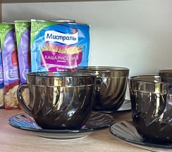 *Мини-кухня для приготовления пищи, чайник (чай, кофе, сахар)