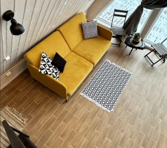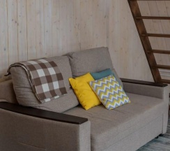 А-фрейм треугольный дом, для отдыха 6 гостей. 6 спальных мест - на втором этаже большая двуспальная кровать, на первом этаже два удобных двуспальных дивана. Кухня со всем необходимым - большой обеденный стол, посуда, плита, микроволновка, чайник, холодильник, моющие эко-средства, губки, чай разных сортов и кофе. Большой ТВ, Wi-Fi. Во дворе мангальная зона, костровая чаша, уютная беседка, терраса. Банный чан оплачивается отдельно.