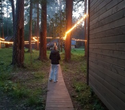 Побывали вчера в Вашем глэмпинге. Место, дом, хозяин - нам все очень понравилось! Дом чистый, уютный, не уставший, без посторонних запахов, прекрасная терраса, шикарный вид на лес, есть вся необходимая техника, предоставляется посуда, халаты-тапочки-полотенца, шампунь-гели. На улице есть мангал, уголь, решетки, розжиг, можно уютно посидеть вечером, зона освещается интересной подсветкой. Баня хорошая, со стильной "изюминкой", чан -с еловыми ветками и цитрусами. Можно приехать компанией до 4х человек и отдохнуть, как мы и сделали. Территория дома чистая, стоянка под камерой на 30-40 машин. Костровая зоны - для уединненых диалогов. В общем, советуем это место для отдыха! Сюда хочется вернуться.