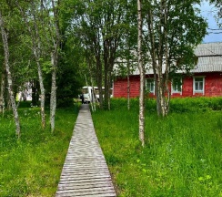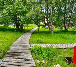 Хутор Варяжский - достаточно большая турбаза на Соловках (несколько 2-х и 1-о этажных домиков, своя столовка, административное здание, свои беседки и мангальные зоны на берегу небольшого озерца). Все здания «связаны» деревянными дорожками для удобства перемещения в любую погоду. Травка подстрижена, да и вообще, вся территория создает настроение умиротворения. Снимали 2-х местный стандарт со своим санузлом: достаточно большое помещение с 2-х спальной очень удобной кроватью, столом, 2-мя стульями, 1-ой прикроватной тумбочкой и зоной «прихожей». Санузел маленький, с душевой, раковиной и унитазом. Все «видавшее виды» и напоминающее скорее пионерский лагерь, чем уютную гостиницу. Звукоизоляции никакой, поэтому слышно и гудящую под окнами не то бойлерную, не то котельную, и постояльцев, проходящих по коридору. Стоимость достаточно высокая, но учитывая, что это остров и выбор здесь не так велик, можно понять ценообразование. Главный минус- это удаленность от Монастыря и основных «точек притяжения». Мы первоначально недооценили расстояние в 2,5 км от поселка, посчитав, что это совсем немного. Но, нагулявшись по достопримечательностям (около 18 км за день), эти 2,5 км по бездорожью вечером оказались настоящим испытанием. Т.е. надо обязательно учитывать свои возможности и адекватно оценивать свое состояние здоровья и погодные условия, прежде чем бронировать номер в «хуторе». На самом деле, у нас остались очень приятные воспоминания, потому, что все «недочеты» с «лихвой» перевесил очень отзывчивый, заботливый и приятный в общении персонал ( от администратора и хозяюшки, до мастера-ремонтника и водителя). Могу с уверенностью сказать, это эти люди не только на 100% выполняют свой функционал, но вкладывают «душу» в свою работу. Только благодаря им, ставлю высшую оценку всему «Хутору Варяжский». И думаю, что при возможности, скорее всего, вернусь сюда ещё, т.к. положительные эмоции перевесили недостатки