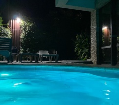 Теплый, чистый и немаленький бассейн в любое время суток, лежаки и мешки в вашем распоряжении)