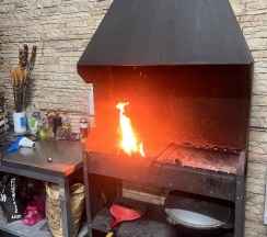 Есть обеденная зона с мангалом и телевизором, чай, кофе