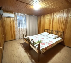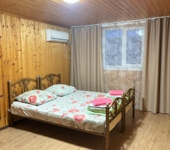 Просторный двухэтажный коттедж, оборудованный всем необходимым для комфортного проживания. В коттедже 4 спальни: 2 на первом этаже и 2 на втором этаже. Спальные места представлены двуспальными или односпальными кроватями, а также 2 двухъярусными кроватями. В каждой спальне установлен телевизор и кондиционер. Кухня включает в себя электрическую варочную поверхность, чайник, холодильник и необходимую посуду. Душ, туалет на первом этаже. Также у дома имеется терраса.