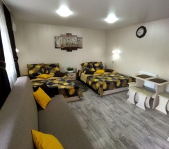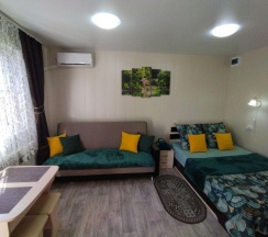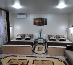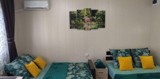 Комната с отдельным входом вместимостью до 5 гостей. Оборудована: Wi-FI, душем, туалетом, кондиционером, посудой, микроволновой печью, холодильником, чайником и тд. К услугам гостей чай, кофе, печенье, каши быстрого приготовления.
