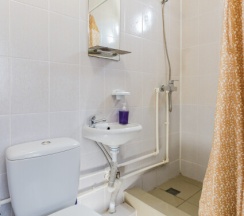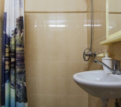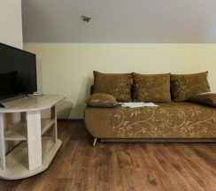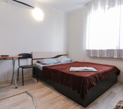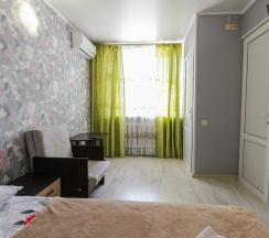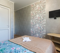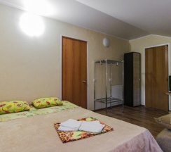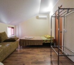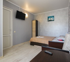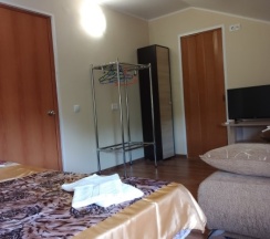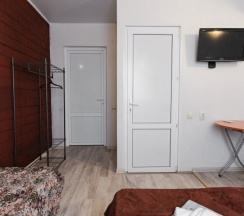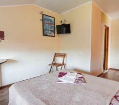 2-х местный номер стандарт + расположен на втором этаже с открытой террасой, всего на этаже три номера и кухня со всем необходимым общего пользования с холодильником и принадлежностями для глажки на эти три номера. В номере имеется всё необходимое: ТВ. кондиционер, двуспальная кровать и раскладное кресло для детского доп. места ребёнку до 12л, тумбочка, плательный шкаф, журнальный столик, вешалка. С/У в номере со всем необходимым, мыльные принадлежности только при заезде. Постельное бельё и полотенце для лица предоставляются. Возможное бронирование с детьми по запросу индивидуально рассчитаем.