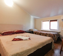 4-х местный номер со всеми удобствами, расположен на третьем этаже гостевого дома с закрытой кухней на три номера. В номере: 2-х спальная кровать, раскладной 2-х спальный диван, плательный шкаф, журнальный столик, тумбочка, ТВ, кондиционер. Постельное бельё + полотенце для лица предоставляется. В с/у мыльные принадлежности при заезде. Для общего пользования на кухне имеется: хол-к, СВЧ, индукционная плита, кухонная утварь, мебель, электрочайник. Кулер с водой и гладильная доска с утюгом находятся на кухне второго этажа. Возможное бронирование с детьми по запросу индивидуально рассчитаем.