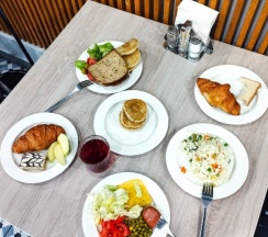 Отель для нас оказался идеальным! Номер уютный, чистый, есть все самое необходимое: чайная станция, холодильник, кондиционер, все средства для личной гигиены, которые ежедневно пополнялись горничной. Завтрак - шведский стол, очень разнообразный, на любой вкус (каши, творог, сосиски, котлеты, нашеств, гарниры в ассортименте, свежие овощи, фрукты, сырная и мясная тарелки, различные джемы и наполнители, йогурты, выпечка). И самый жирный его плюс - это расположение!! Рядом весь транспорт, магазины, кафе и самое главное очень много достопримечательностей в пешей доступности. Готова рекомендовать этот отель на 100%.