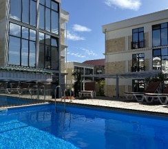 Буду первым - отличный отель, крутые номера, бассей на улице, парковка для машин, очень чисто и во дворе, и в номерах, и на улицах.