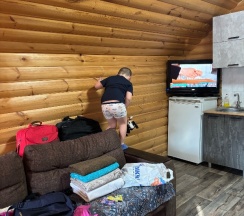 Отдыхали на майские праздники семьёй и с друзьями. Все понравилось, отличное место для отдыха и спокойствия за детей))). Отличная территория, я бы даже сказала огромная, детям идеально для подвижных игр и пряток. В баньке были уже не в первый раз, остались в восторге, как и предыдущие разы). Мангальную зону использовали для завтраков и чаепития. На природе завтракать было шикарно!! Номера удобные, комфортные, все необходимое есть, магазины близко, так что остались всем довольны). Спасибо за отдых!