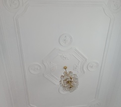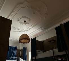 Высоченные потолки с красивой лепниной, люстры изящные, паркет (кстати, не скрипит), кровати двухъярусные добротные , не шатаются и даже тоже НЕ скрипят, всё удобно, комфортно, вкусно пахнет, персонал наикрутейший.