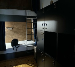 Отличный хостел! Очень чисто, уютно, спальные места в женской 10-местной комнате прекрасно оборудованы - розетки, освещение, матрас широкий достаточно жесткий прекрасного качества, шторы блэкаут обеспечивают уединенность. В общей комнате так же есть ячейки для вещей, закрывающиеся на ключ. Туалет, душевые, умывальники - всё в отличном состоянии. Женщины занимают 2-й этаж, мужчины 1-й, и это очень удобно. На 1-м этаже кухня, оборудованная всем необходимым.