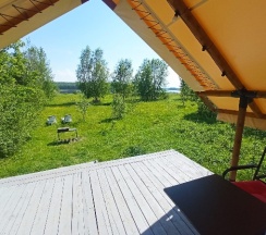 Очень классное место! Хотите отдохнуть в палатке на природе, но при этом избавить себя от неудобств дикой жизни? Вам сюда! Уютные вместительные палатки, большая зелёная территория, оборудованный санузел, куча занятий, прекрасные хозяева! Есть посуда, полотенца, микроволновка, холодильник, чайник, тепловая пушка и вентилятор, куча посадочных мест, печенки, шампуни, ферри, угли и мангал. Милый пляж, который не цветет в отличии от горе моря. Саб, удочки, катамаран, пирс, волейбольная площадка с мячами. Мы больше по футболу, но мячик забыли. Можно ещё такой мяч держать про запас.))) Вода из скважены. В общем с собой теплую одежду, еду (кстати, завтрак включен) и зубную щётку (приманку для рыбы на удочку, если хотите половить). Волшебное место! Если хотите придраться к чему то, то, конечно, найдёте. Но мы туда обязательно вернёмся!!