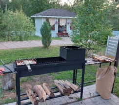 Отдыхали в большом доме, все сделано с душой, территория ухоженная, два пирса, прокат лодок и т.д. В доме 4 спальни, большая гостиная с кухней, беседка, зона с мангалом. Рыбалка приятно удивила: щука, окунь ловится даже с пирса