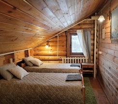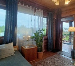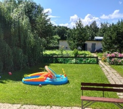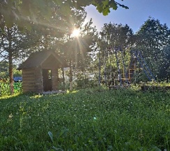 Это семейная дача. Не отель, а деревенский бревенчатый дом. Уютный. Там милая собака, кошка, куры. Большая территория с детской площадкой , спортивной площадкой с баскетбольным щитом.