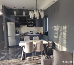 Прекрасный гостевой дом. Очень уютно, красиво, продуманно. Шикарная отделка интерьера, сауна, кухня, мебель, спальня. Все на высоком уровне! Окна в пол, кондиционер, закрытая территория. Огромное спасибо!