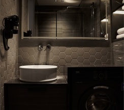 - наполняемость. Есть утюг/доска, стиральная машина и кухня