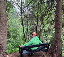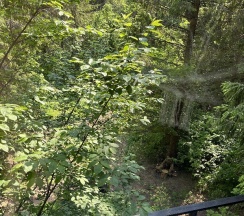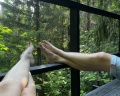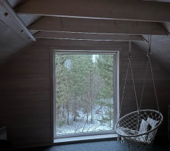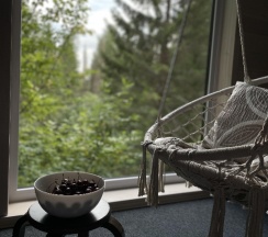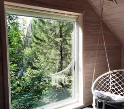 Утреннее солнце и сочная листва в панорамном окне спальни - произвели неизгладимое впечатление. Долго буду вспоминать качель на 2м этаже дома как раз у этого окна))