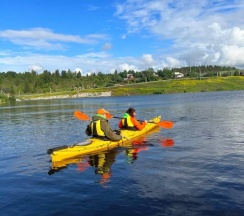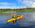 Каяк мы взяли на прокат двухместный, поэтому все время были рядом друг с другом. Управлять им очень просто и совсем не страшно, он такой устойчивый.