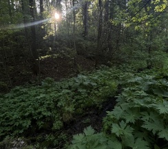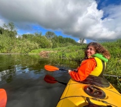 Мы катались на каяке по заливу реки Хохловка. Поднявшись вверх по ее руслу видели диких уток и цапель. А окружающий пейзаж напомнил зелёные джунгли.