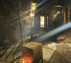 Во первых локация, домик расположен в лесу, это очень атмосферно. Чувствуется максимальное уединение.