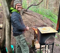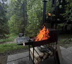 Из-под крана идет родниковая питьевая вода, есть мангальная зона с дровами и углем, предоставляются решетки. Это очень-очень здорово!