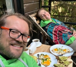 Затем мы заглянули на козью ферму Коза Дереза, где отведали козий сыр, творог и деревенские куриные яйца, омлет из них получился особенно вкусным.