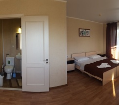Прекрасное место для отдыха, всё в шаговой доступности. Владелец гостевого дома Руслан отличный отзывчивый человек, на территории есть бассейн и всё необходимое для комфортного отдыха. В номерах очень чисто и уютно почти вся мебель новая на территории есть отдельная стоянка.