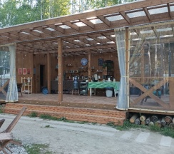 Отмечали детский день рождения. Были девочки 10-12 лет. И мы их почти не видели. На территории им было очень интересно, даже грибы собирали. А еще кошки, собаки, батут и много настольных и дворовых игр. Жаль, что нет полноценного питания. Но оно и к лучшему. Сам выбираешь что готовить. Вся посуда есть. Только берите с собой угли. Дрова сырые и они только тлеют, не горят. Везде чисто, общий туалет и душевые в чистоте и даже полотенца аккуратно сложены. Тишина и красота вокруг. Ты вроде в деревне глухой, посреди леса, но со всеми удобствами.