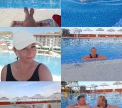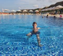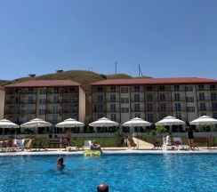 Заехали в отель 4 августа ,нас встретила приятная девушка Аида ,все оформила ,рассказала ,у нас 2х комнатный люкс был с видом на море ,все чисто и аккуратно ,все для первой необходимости есть ,кормят очень вкусно ,в столовой работают доброжелательные девушки ,очень внимательно относятся ко всем ,шутят ,порции Очень большие ,фрукты всегда есть в наличие ,завтраки бесплатные ,обед обходился на 5 чел в районе 2т,я считаю очень приемлемая цена ,на территории отеля есть бассейн,большой ,чистый ,аниматоры приезжают ,не только дети танцуют ,но и взрослые ,моря чистое ,камни да есть ,но не беда ,справа и слева 50м песок ,можно обойти ,вода очень теплая ,спасибо большое за гостеприимство ,вернемся к вам еще