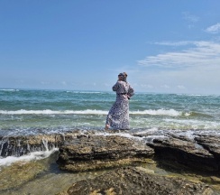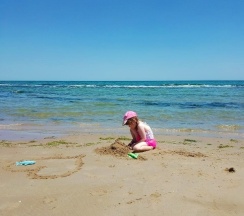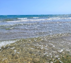 6. Прибрежная зона- тут сложно. Вроде как есть мелководье для малышей, но для взрослых нужно переходить камни. В Условиях волны- тяжело, сбивает да еще и камни скользкие. Море чистое, теплое. Шезлонги и зонтики бесплатно. Не хватает мусорки.