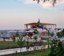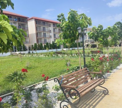 Отель средний, номеров около 50, территории достаточно, всё в цветах. Есть кафе на первом этаже, кормят очень вкусно, и цены дешевле. Расположение отеля немного пугает если нет своего транспорта, но нам повезло, брали в прокат у отеля транспорт, сутки 3500 рублей, да ещё с крутыми номерами - все 777. О номере: есть чайник, кружки, стаканы, фен, кондиционер, сейф, Хороший большой телевизор. На каждого гостя выдаются по 2 белых полотенца, и специальные для бассейна. С погодой повезло, удалось и искупаться и на каньон съездить и Дербент с фонтанами посетить. Отдых получился на славу !