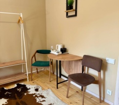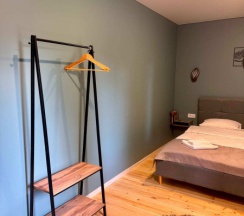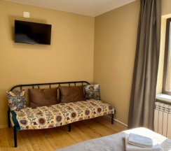 Стандартный номер на 2-м этаже в административном здании, площадь 22 м2. В номере: одна большая или две раздельные кровати, теплые полы, сан.узел, smart TV, wi-fi. Общая кухня на 1-м этаже!