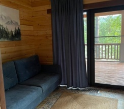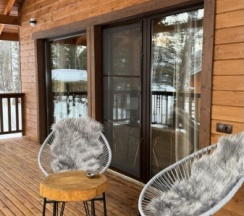 Уютное панорамное шале с отдельной спальней и раскладными диванами в гостиной, камин, просторная терраса с видом на Катунь!