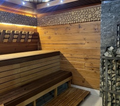 Баня: очень уютная, чистая с большой террасой, бассейном и купелью. 2 часа у нас пролетели, как один миг.