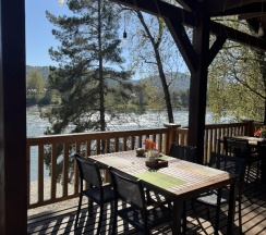 Провела свой день рождения, так как мечтала очень давно., проснуться на белоснежной постеле и наслаждаться видом на Катунь в панорамное окно, потом пить кофе на веранде в кочеле под журчание речки . в поле твоего созерцания -ни кого ни людей, ни соседних домиков только природа!!! Моя мечта сбылась. Все аккуратно, чисто, есть все что нужно, ни разу не обращались с просьбой к администрации. И нам никто не докучал. Я влюбилась в это место, хотя всегда предпочитала уезжать подальше. Спасибо вам большое.
