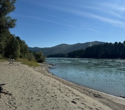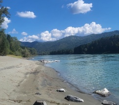 Пляж: мы увидели только маленький кусочек, так как Катунь разлилась… Но летом там, наверное, будет просто великолепное место отдыха!