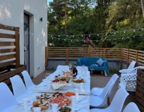 Очень уютные просторные апартаменты, небольшое здание, всего несколько номеров. Свежий, стильный ремонт. В кухне-гостиной есть всё необходимое для приготовления пищи. Удобно добираться хоть на машине, хоть на электричке. Ухоженная территория, есть детская площадка, мангал.