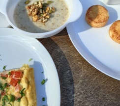 Отдельно хочу отметить великолепные завтраки этого сезона, качественно иной уровень. Честно говоря, когда бронировали в этот раз длительный заезд, я опасалась, что придется снова сидеть на этой «яичной диете», которой закормили в прошлом году 🤣. Но все обошлось. Было разнообразно, очень вкусно. Можно завтракать непосредственно в кафе или заказывать с собой. Этот способ нам оказался намного удобнее, потому что ребенок, например, не готов сразу после сна плотно завтракать.
