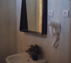 3. Собственный душ, туалет, фен, косметические средства, тумбочка и вешалка